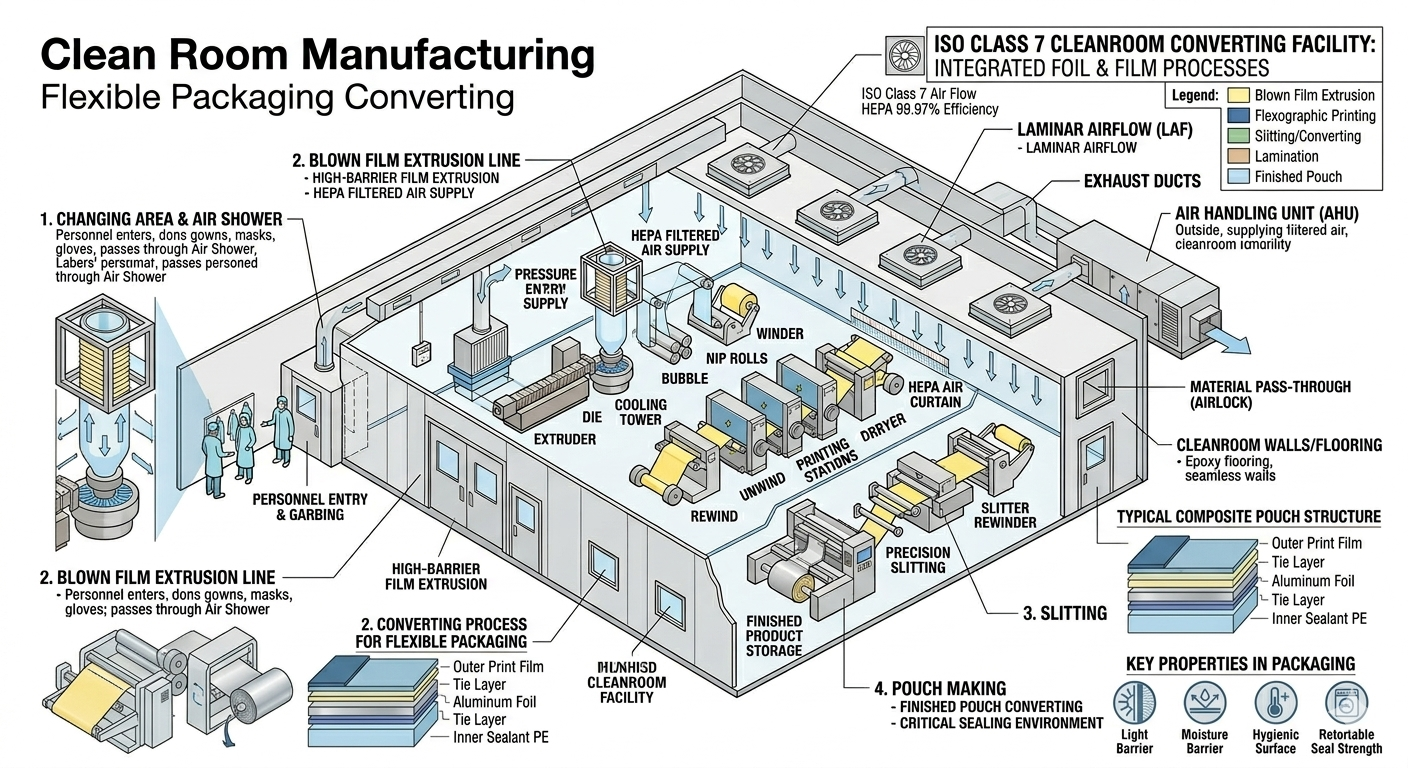 - Electronics: cleanroom processing used to convert films and laminates for semiconductor packaging.